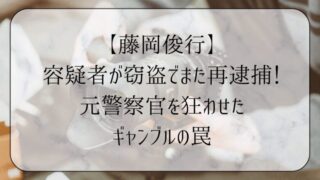 容疑者 【藤岡俊行】容疑者が窃盗でまた再逮捕!元警察官を狂わせたギャンブルの罠 藤岡俊行容疑者は、刑事課巡査という輝かしいキャリアを捨て、ギャンブル欲を満たすために一般住宅を狙った「泥棒」へと成り下がりました。2025年11月、白岡市の住宅に窓ガラスを割って侵入し、貴金属など約31万円相当を盗み出した疑いが持たれています。 2026.03.10 容疑者