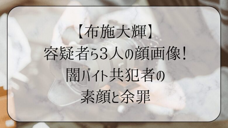 しかも、彼らは互いに面識のない「闇バイト」で集まったメンバーだとか。本記事では、布施大輝容疑者のプロフィールや、気になる共犯者の顔画像、そして背後に潜む闇バイトの恐ろしい実態について、徹底的に深掘りしていきますね。