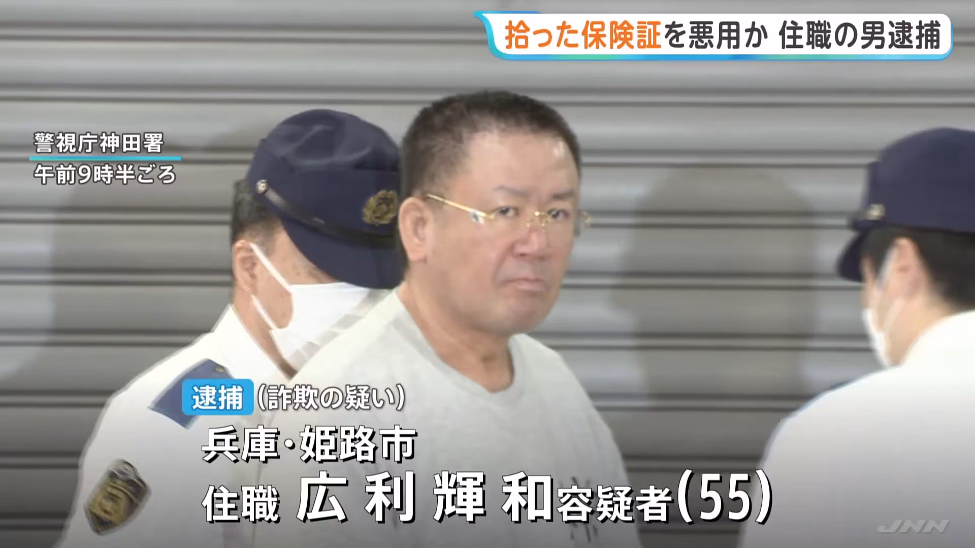 逮捕された廣利輝和容疑者(55)の容疑は、他人の健康保険証を悪用した詐欺です。2026年2月、大阪市内の病院で、都内の路上で拾った60代男性の保険証を提示し、本人になりすまして診察や薬の処方を受けた疑いが持たれています。