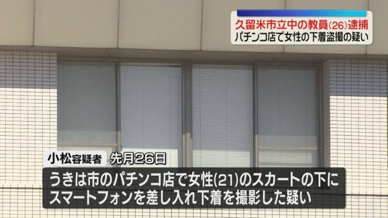 • 小松睦矢容疑者(26)は久留米市立中学校の現職教師。