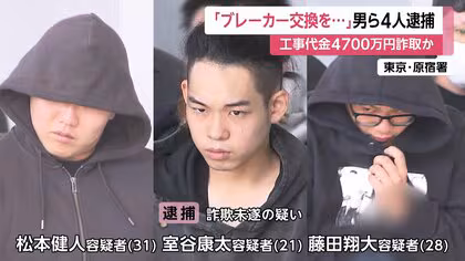 他3名の男20代野田柊介容疑者ほか2名。現場作業員や勧誘役として組織的に動いていた疑い。