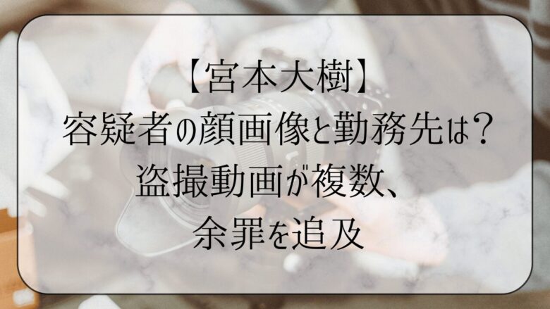 【宮本大樹】容疑者の顔画像と勤務先は?盗撮動画が複数、余罪を追及