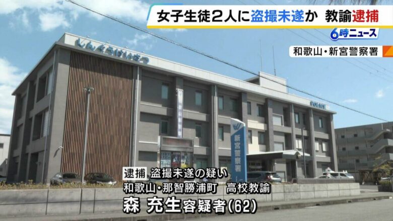 和歌山県内の教育現場に激震が走っています。現職の公立高校教師である森充生(もり みつお)容疑者(62)が、授業中に女子生徒のスカート内を盗撮しようとしたとして、性的姿態撮影等処罰法違反(未遂)の疑いで逮捕されました。