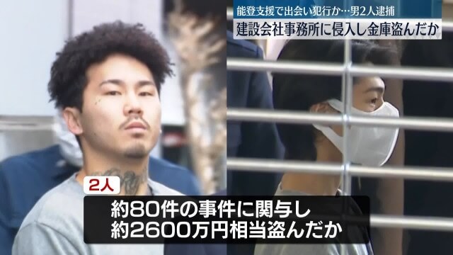 三重県伊賀市の建設会社から現金約1600万円が入った金庫を丸ごと盗み出すという、大胆かつ卑劣な犯行。逮捕されたのは中村和也(なかむら かずや)容疑者(30)と清水総一朗(しみず そういちろう)容疑者(21)の2人です。