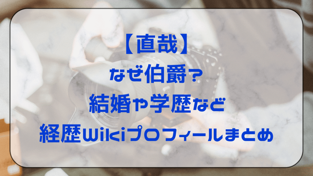 【直哉】なぜ伯爵?結婚や学歴など経歴Wikiプロフィールまとめ