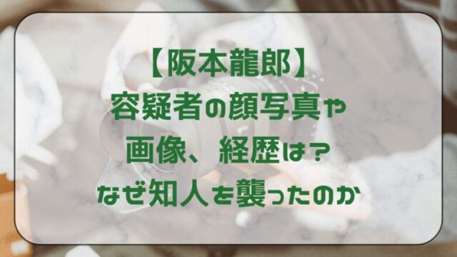 TREND 【阪本龍郎】容疑者の顔写真や画像、経歴は?なぜ知人を襲ったのか 現時点(2025年12月11日)では、阪本龍郎容疑者の顔写真や、顔が明確に特定できる静止画は確認されていません。現時点で公表されている経歴などの基本情報はごく限られています。動機は突発的な衝動というよりは、何らかの強い感情の蓄積があった可能性を示唆しています。 2025.12.11 2025.12.21 TREND容疑者