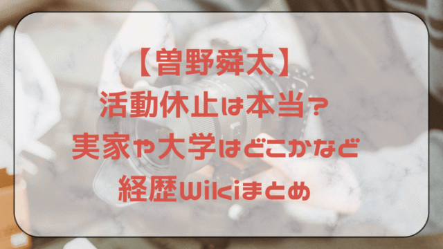 【曽野舜太】活動休止は本当?実家や大学はどこかなど経歴Wikiまとめ